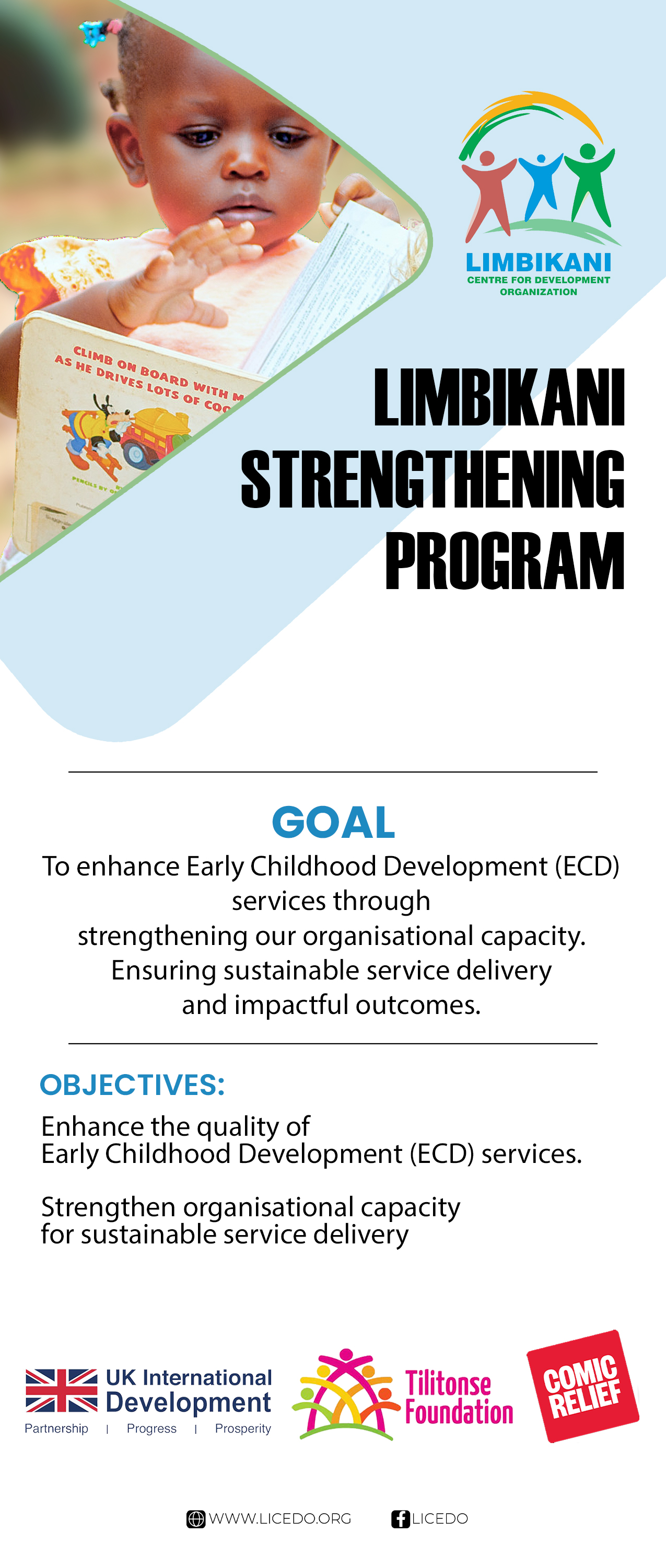 LICEDO, is implementing a 5 year intervation, from 2025 to 2030, with the support from Tilitonse Foundation in partnership with Comic relief and UK Aid. the Goal of the project is to enhance Early Childhood Development (ECD) services through strengthening our organisational capacity, ensuring sustainable service delivery and impactful outcomes.